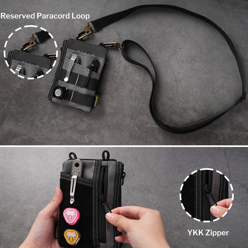 VIPERADE VE18 Small EDC Pouch Tool Organizer,Multifunction Small Tools Pouch with 6 Pockets,EDC Organizer Pouch for Men,Mini Pocket Pouch with Patches Area for DIY,Small Multitools Organiser bag(Grey)