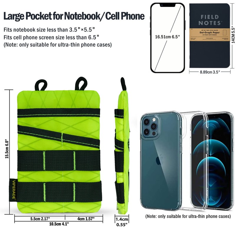 - 【High-quality EDC Pouch】X-Pac fabric, YKK zipper, nylon suture, 2 slots front pocket for EDC Gears, 1 large pocket for cell phone or notebook, 1 zipper pocket for your coins, change, ID cards.