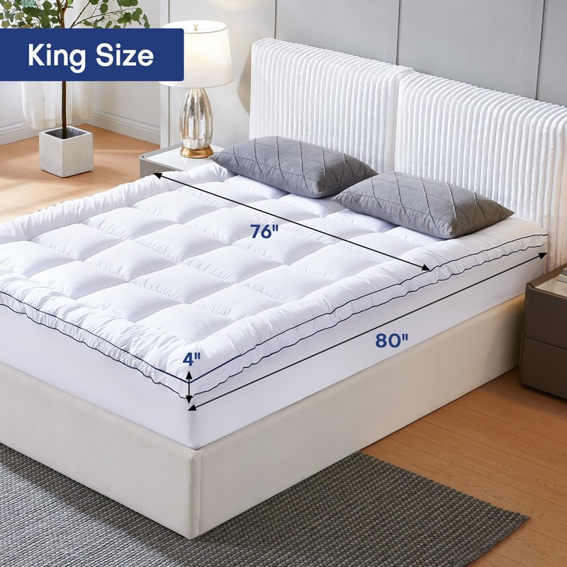 • Private Painless Sleep Customization :The king mattress topper has a firm, soft and supportive fit that conforms to your body without sagging. mattress toppers distribute your body weight evenly, relieving pressure points and alleviating pain in the hips, back, and neck for a deeper, more restful night's sleep. The dual-layer mattress topper is available in two layers that can be used separately or in combination to customize the height and firmness of the mattress topper to your needs.