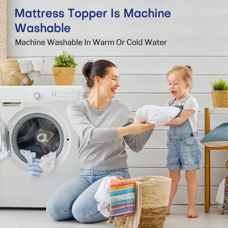 3D Cube Pillow Top Design: The mattress topper is made of rayon cotton material with 3D Cube Pillow Top mattress cover sewn on it, which looks atmospheric and neat, fluffy and soft. Material Collocation :Mattress topper made of Rayon,Cotton material,Memory Foam,Gel Memory Foam,exquisite craftsmanship,well-made. Removable Design :The memory foam mattress topper has a horizontal zipper that makes it easy to remove the memory foam.