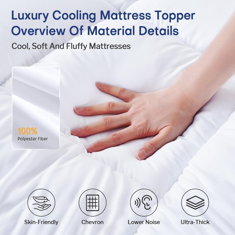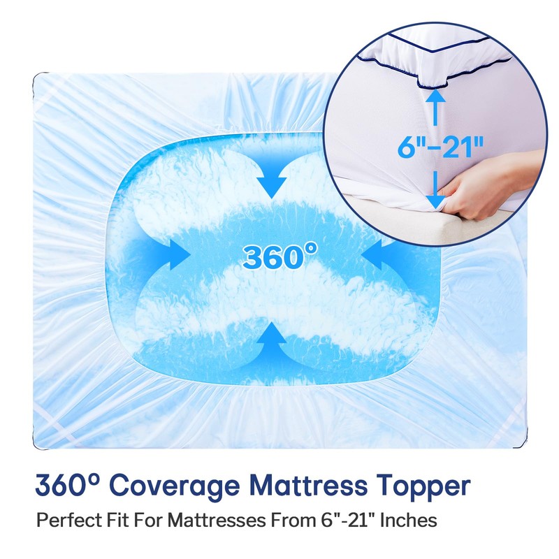 • Omni-Coverage :Designed with stability and slip resistance in mind, the Vipfree MattressTopper comes with 21-inch deep elastic pockets to accommodate mattresses up to 21 inches in height, and fits a variety of mattress types for added protection for your mattress. The PillowTopper mattress cover comes with 4 corner straps to keep the bottom layer in place at all times, giving you the freedom to move around without slipping or shifting.