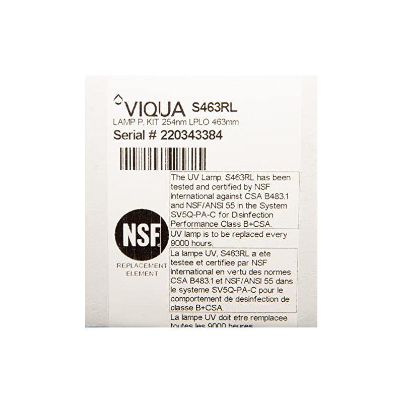- ULTRAVIOLET DISINFECTION: The Viqua S463RL lamp helps create UV light in the Viqua S5Q-PA system. This utlizes UltraViolet light to combat waterborne pathogens while adding nothing to the water except for UV light.