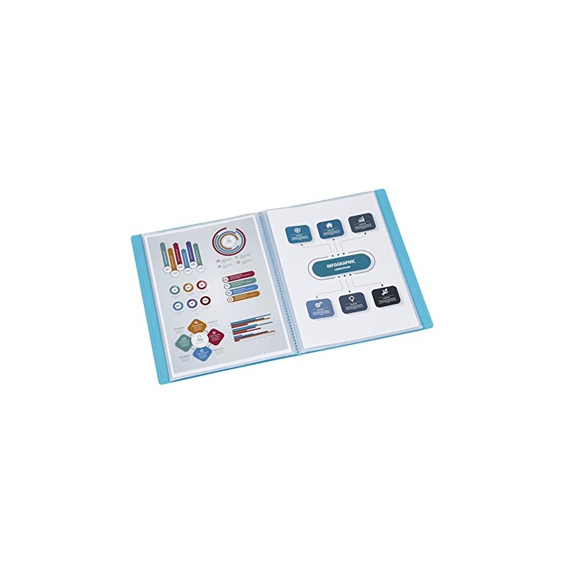 Viquel - Document protector made in France – A4 size binding – 100 views (50 pockets) Propyglass – Grain interior pockets – Translucent blue cover