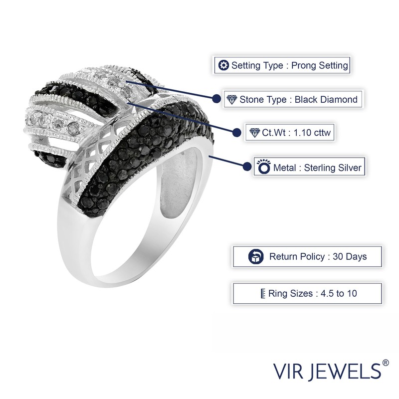Vir Jewels 1.10 cttw Black and White Diamond Ring .925 Sterling Silver with Rhodium Size 7