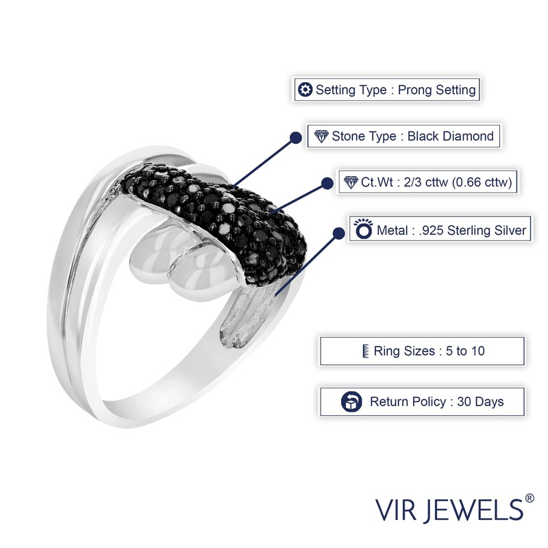 Vir Jewels 2/3 cttw Black Diamond Ring .925 Sterling Silver with Rhodium Plating Size 7