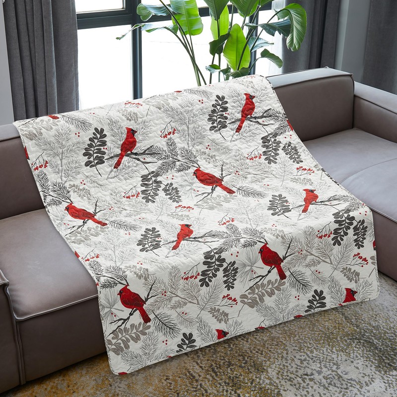 Virah Bella Quilted Throw Blanket 50" x 60" Cardinals Lightweight Throw Quilt Great for Loungers & Extra Bedding - Seasonal -Themed Blanket