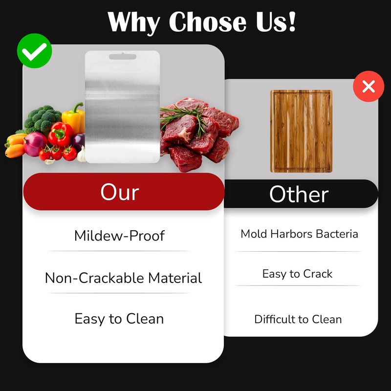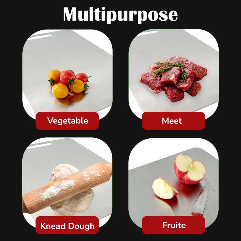 • Multipurpose & Stylish Kitchen Upgrade: VIRALCRAFT’s titanium cutting board is a sleek and silver kitchen upgrade. it suits every need from home cooks to chefs. Its modern, steel finish blends style with functionality. Use it for fruits, meats, vegetables, or even as a serving board—truly a smart cutting board solution.