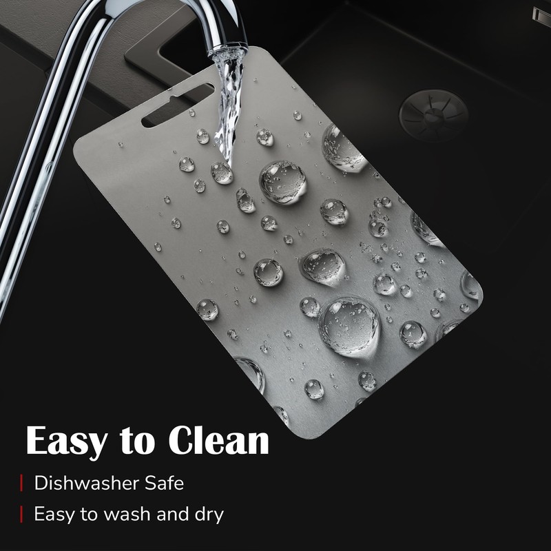 • Premium Titanium Cutting Board for Kitchen: Crafted with high-grade titanium, this durable and odor-free cutting board is perfect for all kitchen needs. Designed to be knife friendly and crack-resistant, it’s ideal for slicing fruits, vegetables, meats, cheese, and more. This cutting board also resists scratches, making it a long-lasting addition to your kitchen essentials.