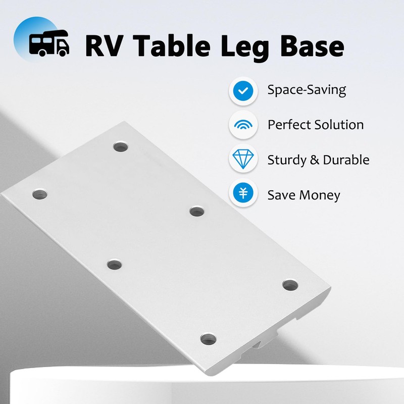 - đăThoughtful DesignăThe thin plate is designed to protect wooden walls or other expensive walls, allowing you to enjoy the convenience brought by RV table base without any worries. RV table bracket frees you from any trouble that may affect your RV travel. Our RV table leg provides assurance for your RV journey.