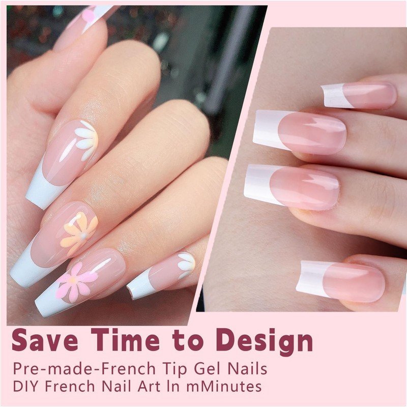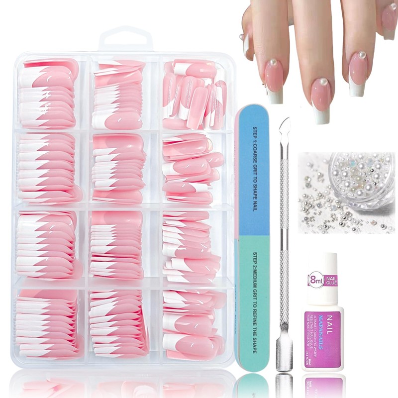 Virellay 240 Pieces Press On Nails French Set - False Nails Tips Set with Full Coverage (Medium Long French) (French, Medium)