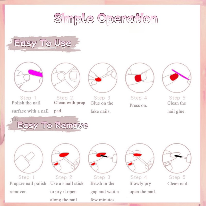 • Healthy high quality: the press on nail manicure is resistant to daily wear and tear, strong, environmentally friendly, non-toxic.