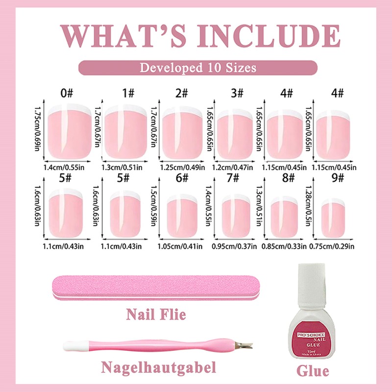- 【Einfach zu Benutzen & Bequem】 Unser french kurze nägel zum aufkleben, klassisch und Mode. Sie können schöne press on nails french Nagelkunst einfach und schnell zu Hause bekommen, Zeit und Geld zu sparen, sauber und wirtschaftlich. ist es einfach zu trimmen und feilen sie auf jede Länge und Form, die Sie mögen. Künstliche fingernägel zum aufkleben es ist für die meisten Gelegenheiten geeignet.