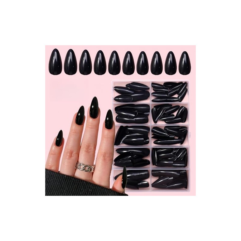 Virellay Press On Nails Almond - 120 Pcs Falsche Nägel Tips Set (Black, 120 Pcs)
