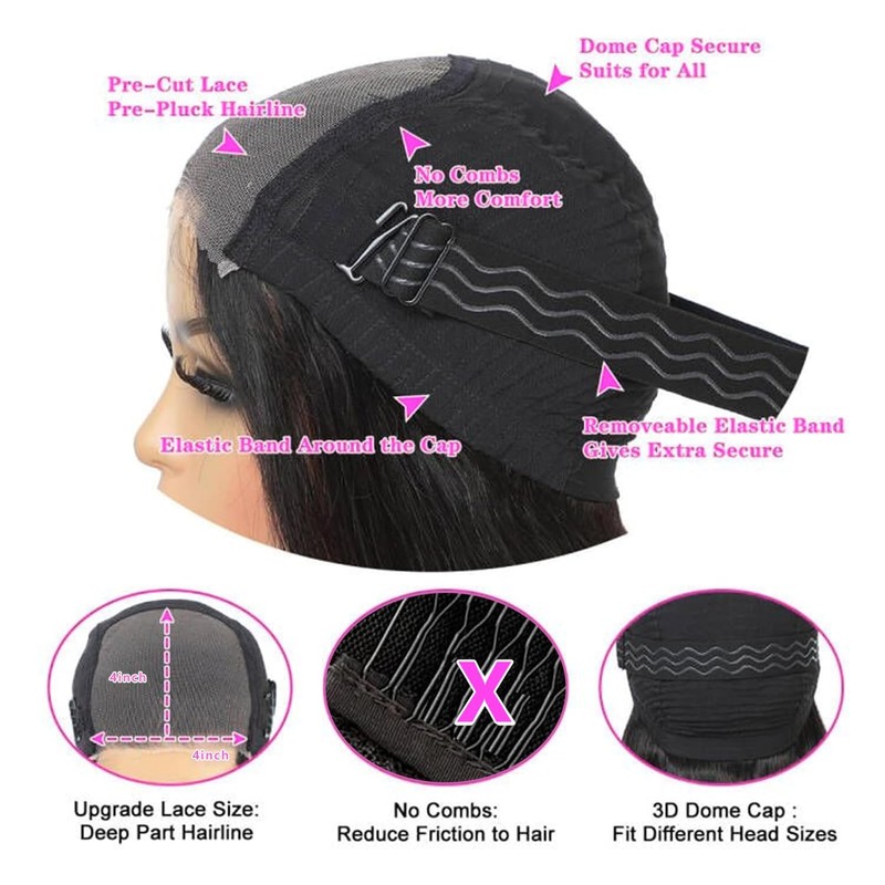 - Wear and Go Glueless Wig Lace :4x4 closure human hair wig, pre-plucked HD lace, invisible,soft breathable perfectly into the skin. Pre-plucked bleached knot,looking more natural,more charming
