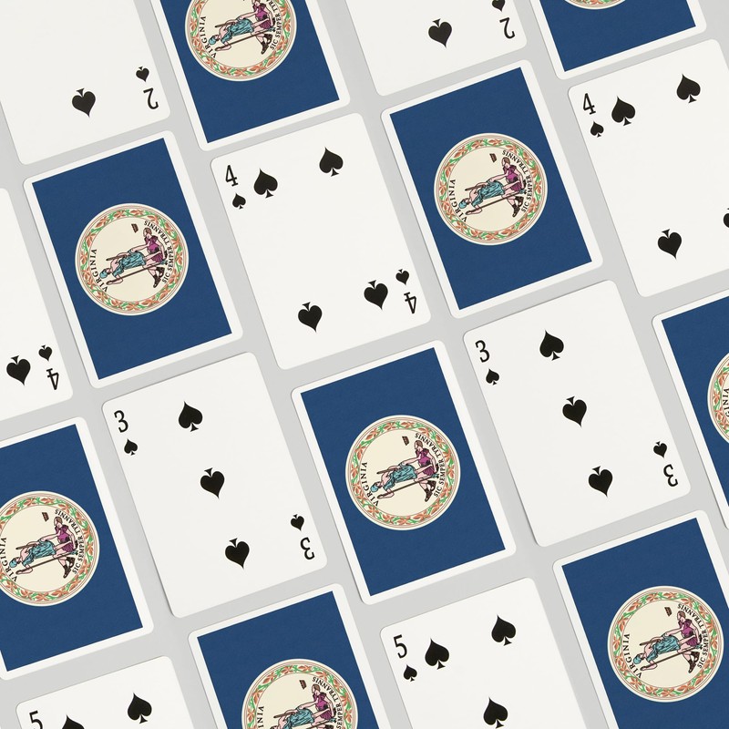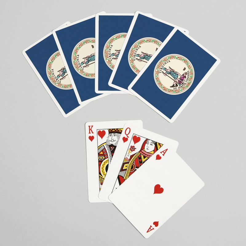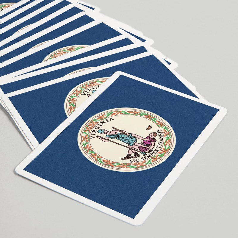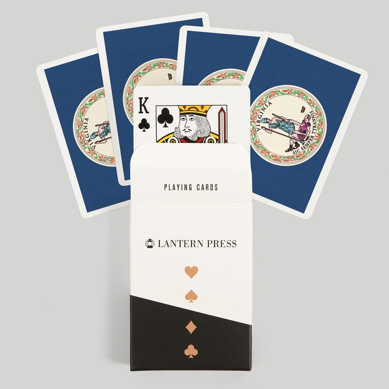 High-quality playing cards from Lantern Press, with unique artwork of Virginia State Flag, Letterpress (52 Playing Cards, Poker Size Card Deck with Jokers).