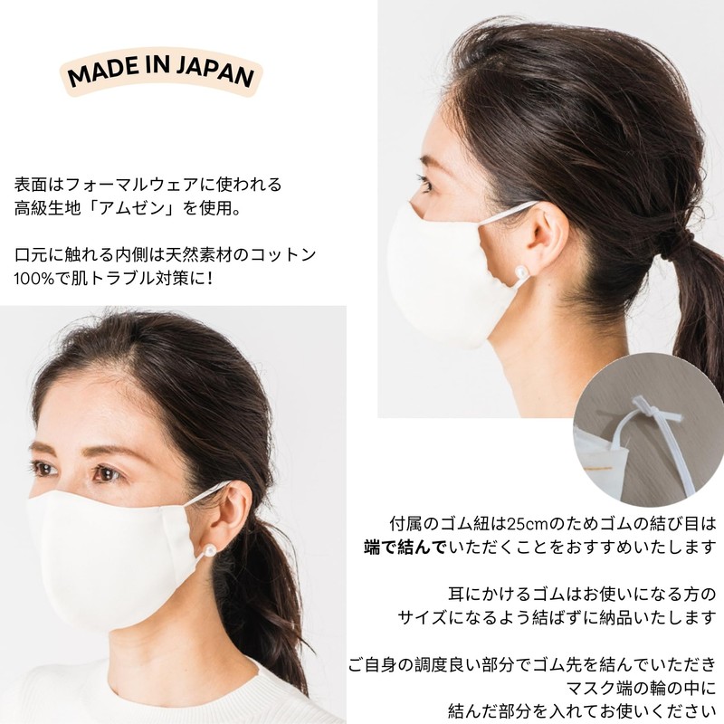 - The surface is made of Amzen, a high-quality fabric used for formal wear. The inside that touches the mouth is made of 100% natural cotton to prevent skin problems. Japan Cole Rubber made with Toray Lycra Fiber Coal rubber is not only stretchy, but also has excellent shrinkage and recovery power. It is durable even after repeated use and washing, and the tissue is fine so it won't come apart. Tie your own good elastic tip and place the knot in the loop at the end of the mask