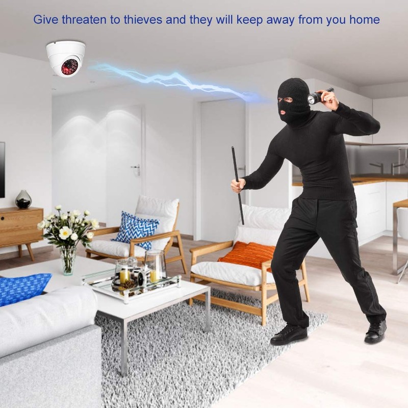 - WITH LED LIGHT INDICATION: LED light flashes every 3 seconds, looks like real infrared ball video surveillance, keep your house away from the trouble of thieves with a simple device, it is worth buying