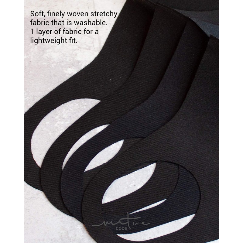 VIRTUE CODE Second Skin Cloth Face Mask Pack. 4 Buttery Soft Masks Washable Fabric - Black Face Mask Reusable. Stretchy, Comfortable, Fresh Facemask.