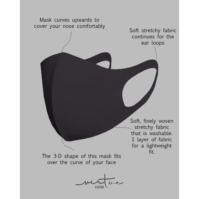 - Loved Across The World: From USA to Europe, Second Skin are the masks you choose most! Read all our nice comments to find out why, and order yours now. Your 4 Mask Pack includes 4 Reusable Black Face Masks (13.5” ear to ear / 5.5” top to bottom). Embrace The Ritual with VIRTUE CODE.
