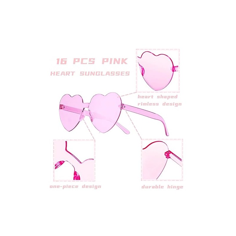 - Package includes: 16 pairs of pink love heart rimless sunglasses, which are beautiful and cute, plentiful, and easy to wear with your different outfits to show off your style.