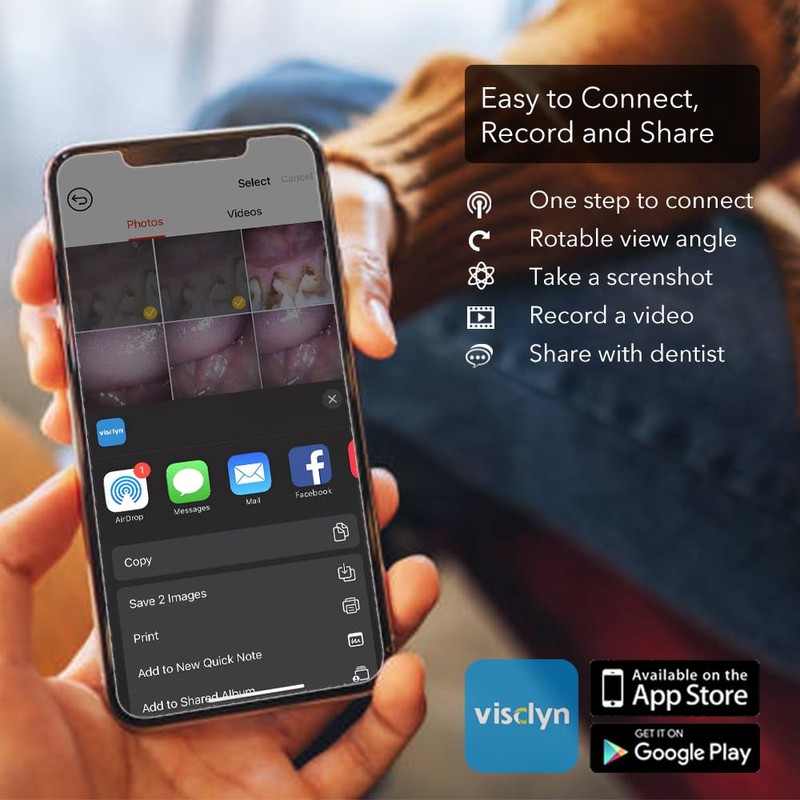 • iOS & Android Compatible - The free App enables sharing images or videos with your dentist