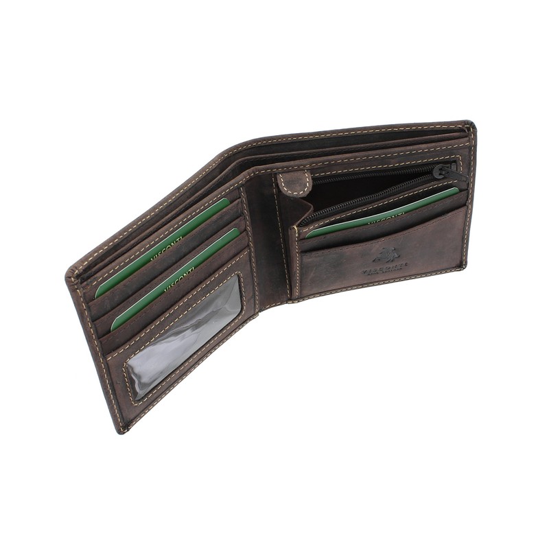 VISCONTI Hunter Oiled Leather Shield Wallet 707 Oil Brown RFID