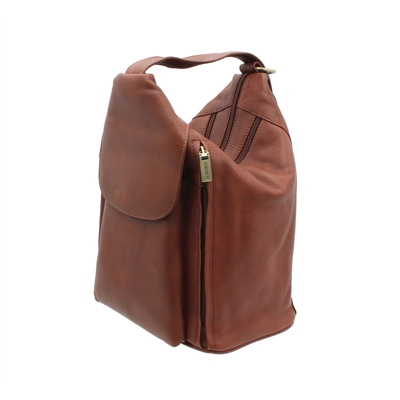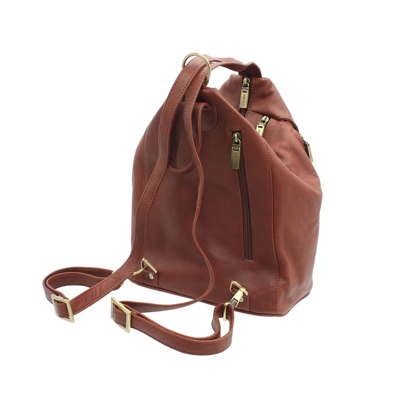 VISCONTI - Leather Anti Theft Backpack For Women - Medium Rucksack With Adjustable Shoulder Straps - Multiple Pockets - 18357 DANII - Brown