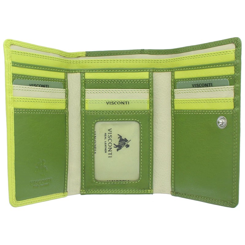 VISCONTI Rainbow Collection Bora Tri-Fold Leather Purse RFID Blocking RB43 Lime Multi