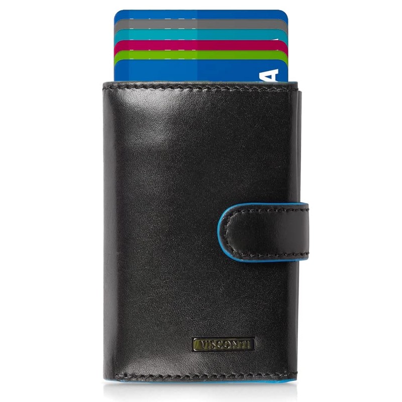 • Quick access to your cards: the innovative metal holding mechanism allows you to quickly select the cards. Can also be operated wonderfully with one hand. No more fumbling at the checkout. The card case holds 6 cards + 1 card in the wallet. Our Visconti mini card wallet has a compartment for unfolded banknotes and a compartment for coins