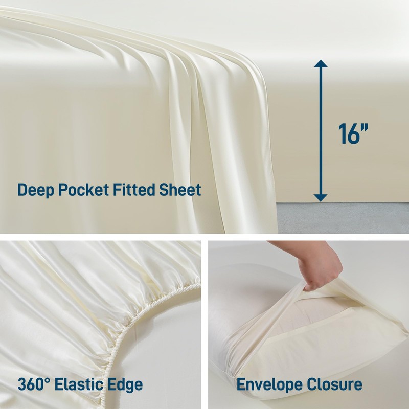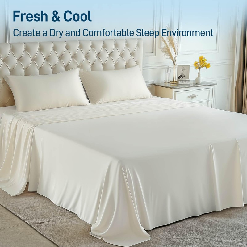 Viscose Derived from Bamboo, Soft Cooling Bedding with Silky Smooth Finish,16" Deep Pocket, Hypoallergenic, Breathable, 4 Pieces Full Luxury Hotel Milky White Bed Sheet Set, Oeko-Tex Certified