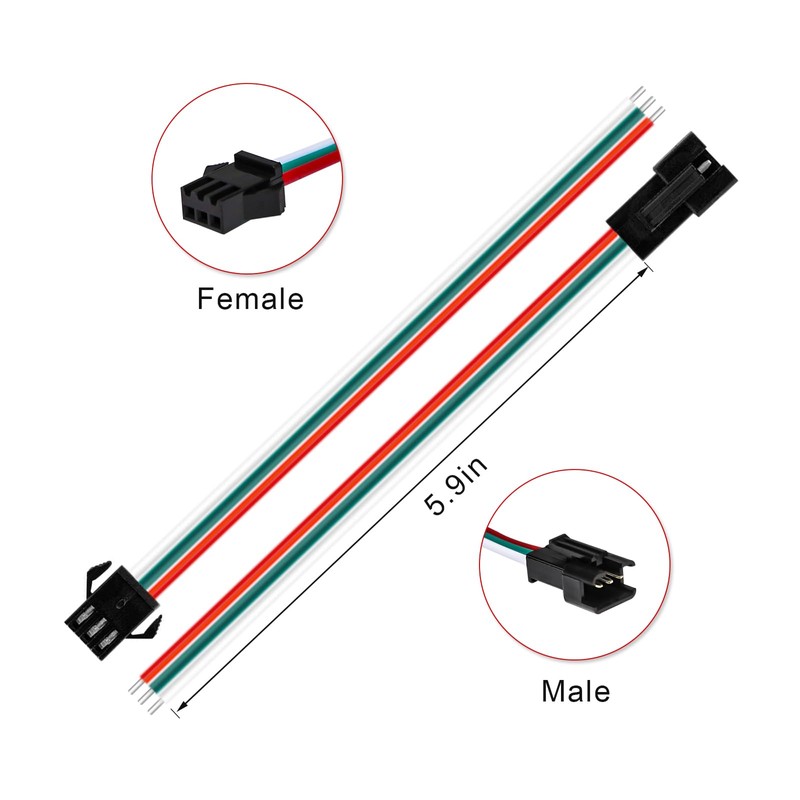 This 3-Pin JST SM connector for WS2811 WS2812B SK6812 LED strips, LED wall-washers, LED underground light, LED belt light, curtain light, twinkle light and so on.