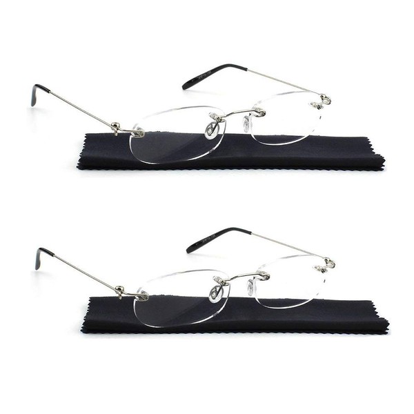 Viseng 2 Pairs Unisex Super Lightweight Rimless Quality Readers Ultra Thin Clear Lenses Frameless Reading Glasses +1.0
