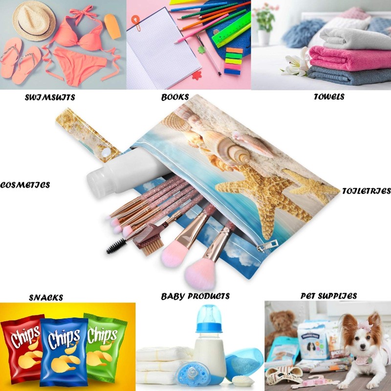 visesunny 2Pcs Wet Bag with Zippered Pockets Starfish Shell Washable Reusable Roomy Diaper Bag for Travel,Beach,Pool,Daycare,Stroller,Diapers,Dirty Gym Clothes, Wet Swimsuits, Toiletries