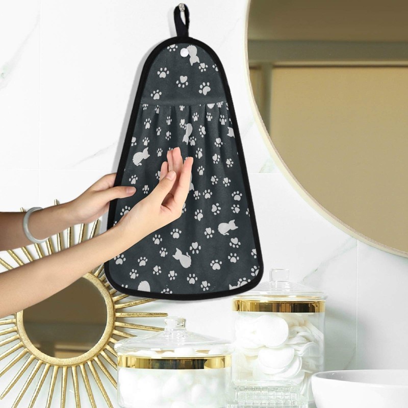 visesunny Hand Towel for Kitchen Bathroom Decor Cat Paw Print Soft Absorbent Cotton Washcloths Quick Dry Dish Towel with Hanging Loop Botton