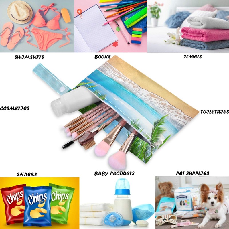 visesunny Palm and Tropical Beach 2Pcs Wet Bag with Zippered Pockets Washable Reusable Roomy for Travel,Beach,Pool,Daycare,Stroller,Diapers,Dirty Gym Clothes, Wet Swimsuits, Toiletries