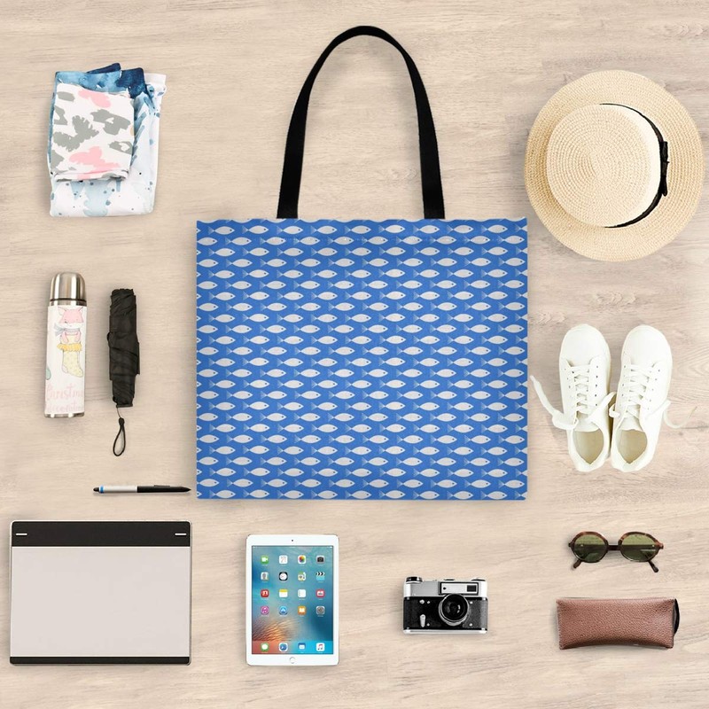 visesunny Women's Large Canvas Tote Shoulder Bag Fish Blue Pattern Top Storage Handle Shopping Bag Casual Reusable Tote Bag for Beach,Travel,Groceries,Books