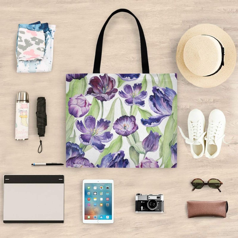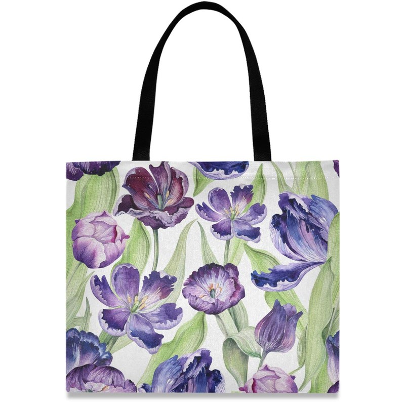 visesunny Women's Large Canvas Tote Shoulder Bag Purple Tulip Flower Top Storage Handle Shopping Bag Casual Reusable Tote Bag for Beach,Travel,Groceries,Books
