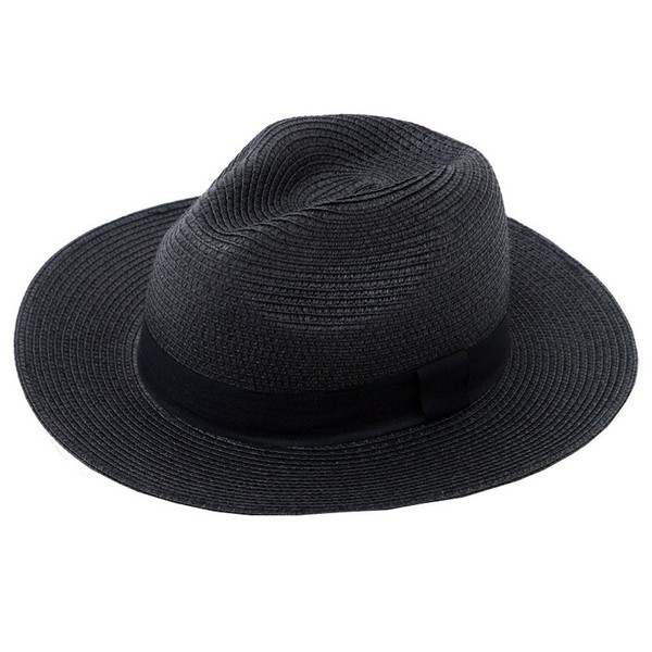 VISHA18-01 Men's Unisex Long Brim Hat, Medium Folding Hat, Straw Hat, Wide Brim Straw, Sunshade, Spring, Summer,, Black