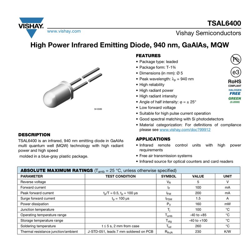 - Peak wavelength: λp = 940 nm