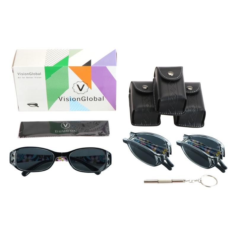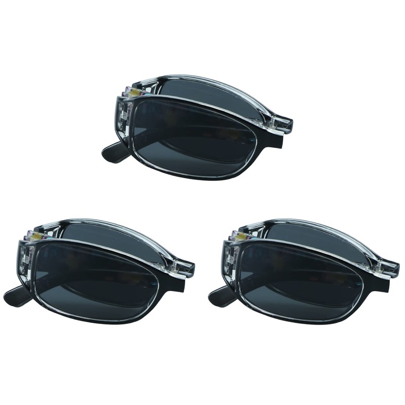 VisionGlobal 3 Pairs Reading Glasses/Sunglasses Foldable with Blue Light Blocking lens Compact Folding Glasses for Women (3 Black, 2.25 Magnification)