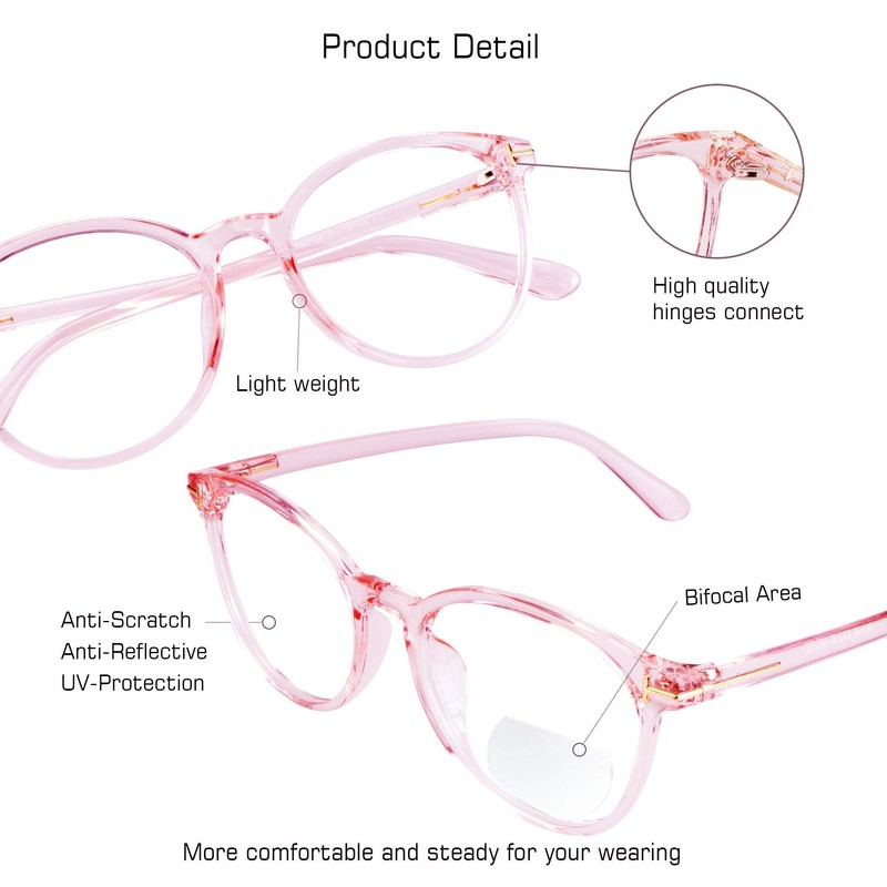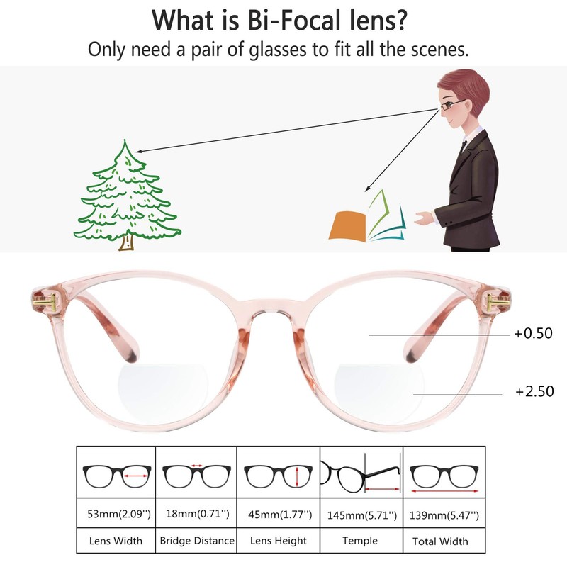 - 【BIFOCAL READING GLASSES】 - These lenses accommodate for both near and far vision by adding a unique lower lens with ADD vision value for reading and near vision.