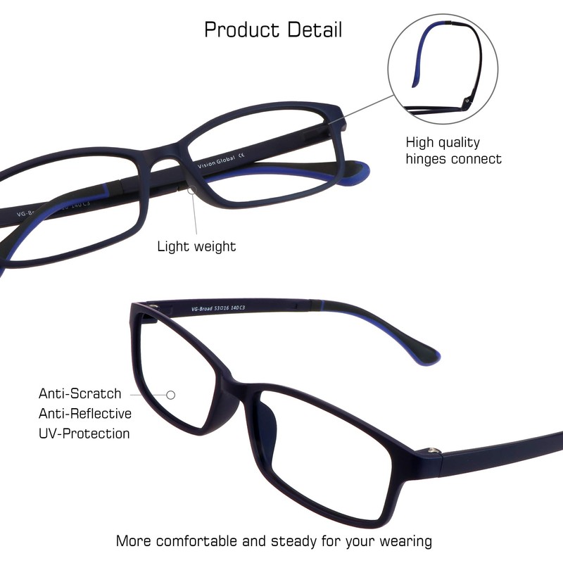 VisionGlobal Blue Light Blocking Glasses for Computer Reading or Gaming, UV 400 Anti Glare Lenses Help Reduce Eye Strain and Fatigue, Men and Women Frame, Multi-Magnification+2.00