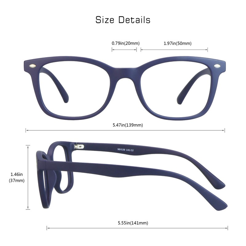 - Material:10.5g, ultra lightweight, frame TR90, no pressure on ears for long time wearing. Lens Resin. Square shaped frames with a navy pattern, crafted from lightweight yet durable TR90