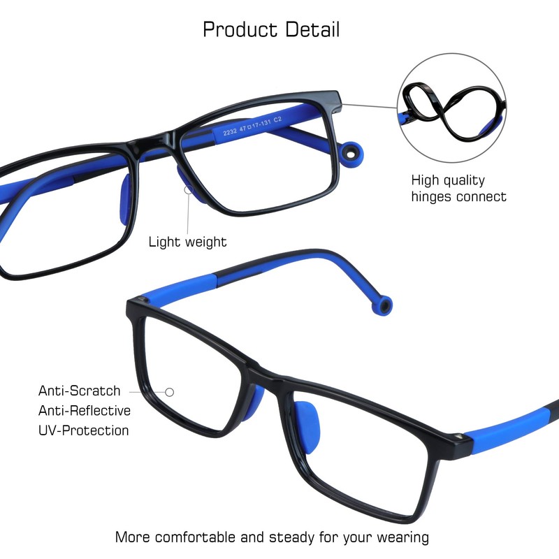 • Silicone rubber frames are the most durable, flexible and lightweight material– perfect for kids.