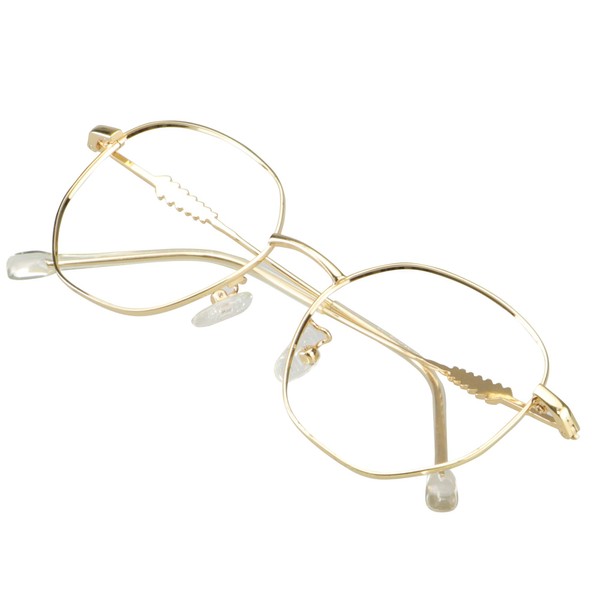 VisionGlobal Blue Light Blocking Glasses for Women, Anti Eyestrain, Computer Reading, TV Glasses, Stylish Square Frame, Anti Glare (Golden, No Magnification)