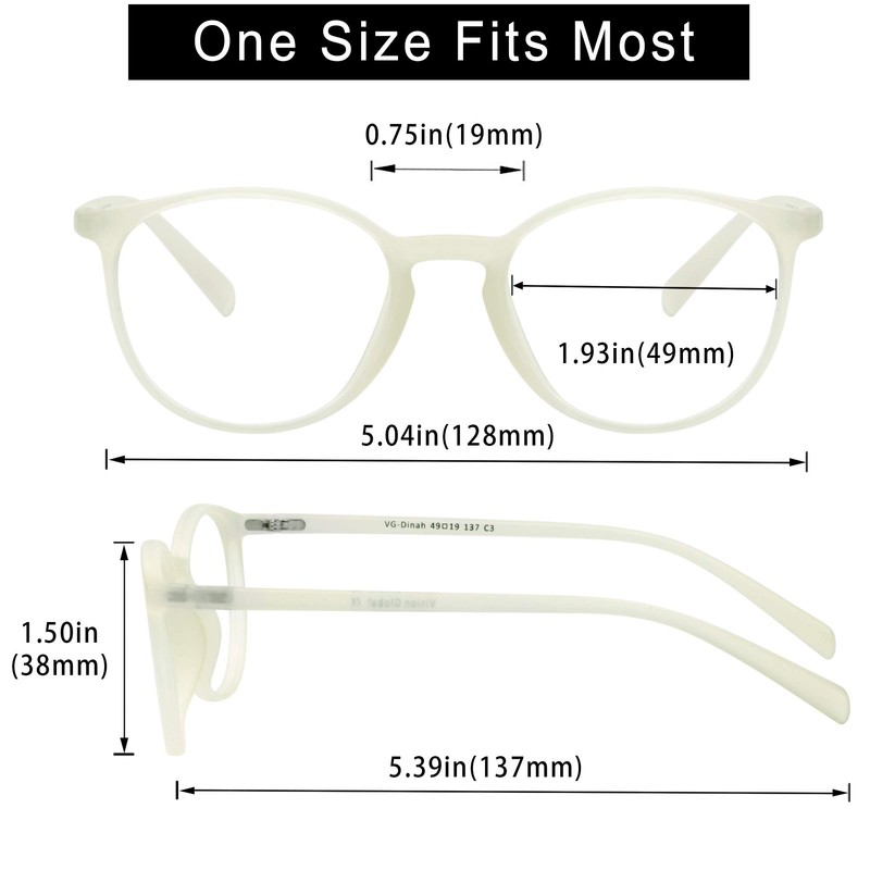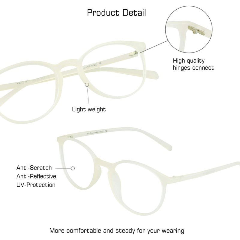 VisionGlobal Blue Light Blocking Glasses for Women/Men, Anti Eyestrain, Computer Reading, TV Glasses, Stylish Oval Frame, Anti Glare (White, 1.75 Magnification)