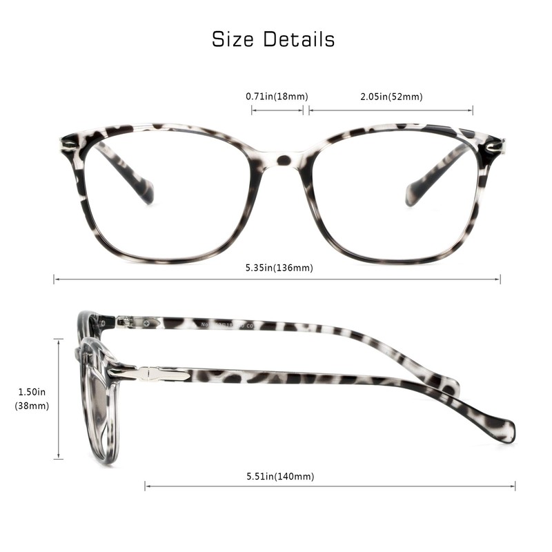 - Material:11g, ultra lightweight, frame TR90, no pressure on ears for long time wearing. Lens Resin. Square shaped frames with a leopard pattern, crafted from lightweight yet durable TR90
