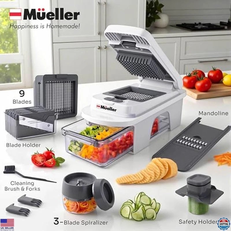 Visit the Mueller Store 12 Blade Mandoline Slicer & Vegetable Chopper, Grater, Dicer, Spiralizer Set