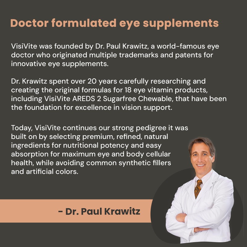 • Trusted for over 20 years - Made in the USA in an FDA registered facility, Visivite has been a trusted supplier of Doctor formulated Eye Vitamins for more than 20 years.