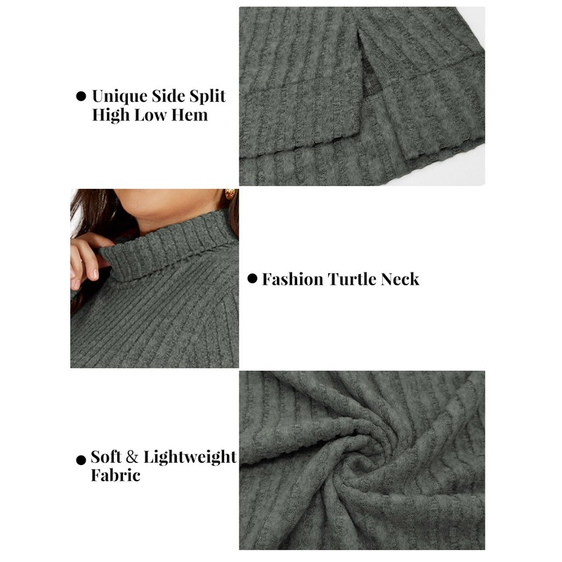 Feature: turtleneck, side split, high low hem, ribbed knit, invisible stripe with soft and stretchy fabric